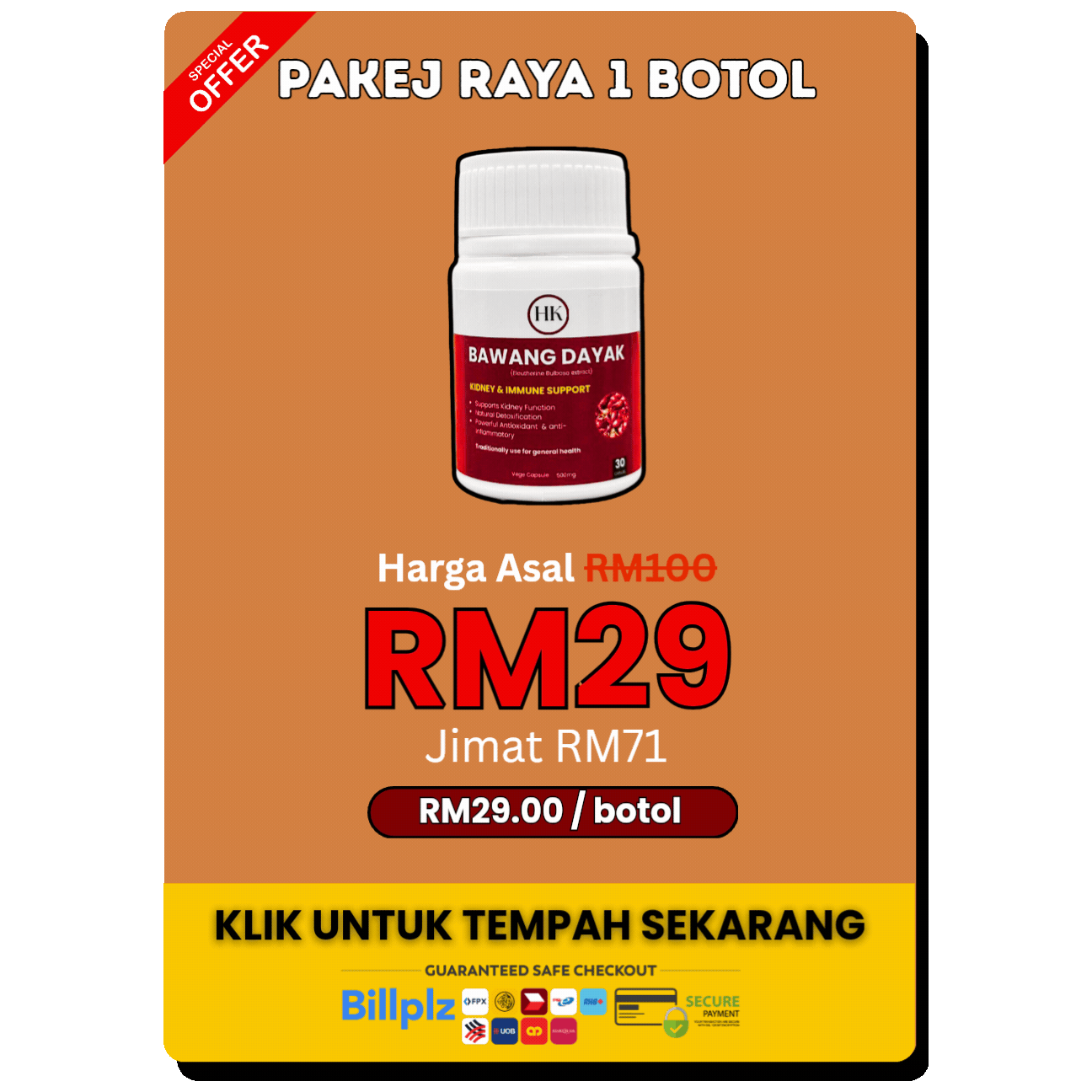 Produk ini adalah suplemen herba bukan. Kesan mungkin cepat atau lambat berbeza bagi setiap individu.