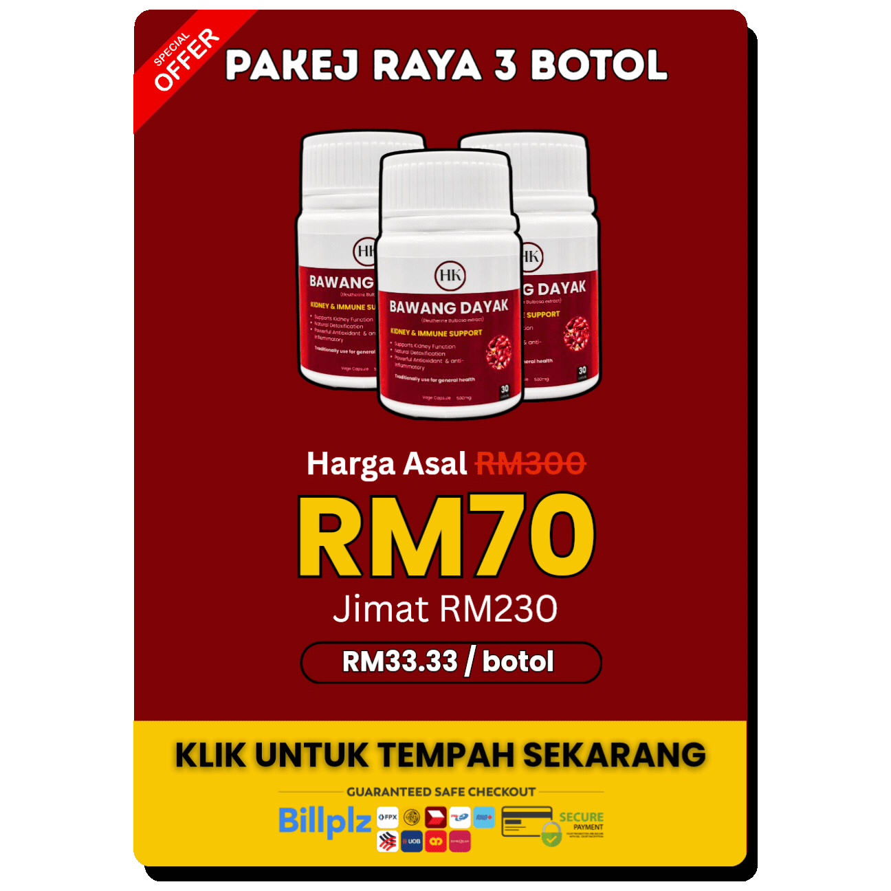 Facebook™ or FB is a Registered Trademark of Facebook.com. The site bawangdayak.com is not affiliated with Facebook.com in any way, nor does they sponsor or approve any of products. All trademarks mentioned here are copyrighted by their respective owners. Your personal data will be used to process your order, support your experience throughout this website and for other purposes described in our privacy policy. Individual results may vary, and testimonials are not claimed to represent typical results. All testimonials are by real people, and may not reflect the typical purchaser’s experience, and are not intended to represent or guarantee that anyone will achieve the same or similar results. Shipping & delivery : We will deliver within 24 hours after confirming your order. We will notify you whenever there are special circumstances. Privacy : We will not use personal information provided by our customer for any purpose other than shipping and contact, not transfer or provide to a third party. Terms & conditions: By visiting our site/ or purchasing something from us, you engage in our “service” and agree to be bound by the following terms and conditions. We are committed to following Google’s Webmaster Guidelines and maintaining a safe browsing experience for users.